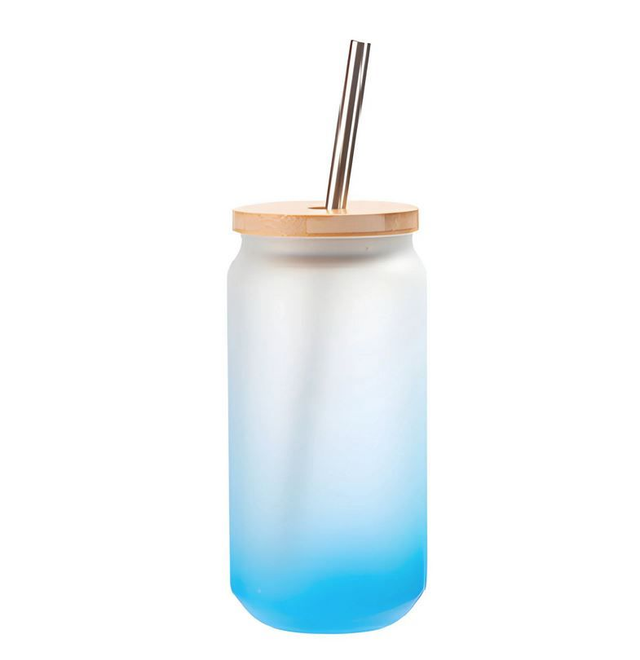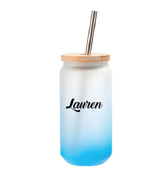 Personalised Glass Jar with Bamboo Lid & Straw - BLUE