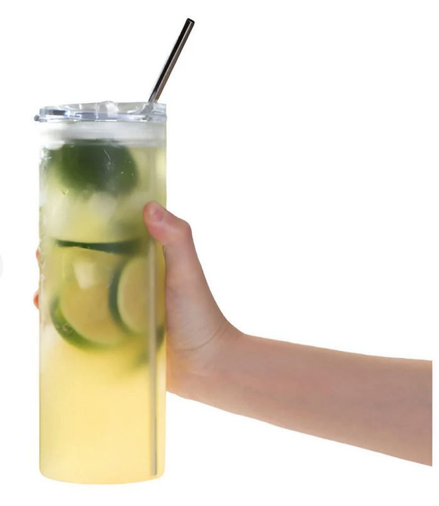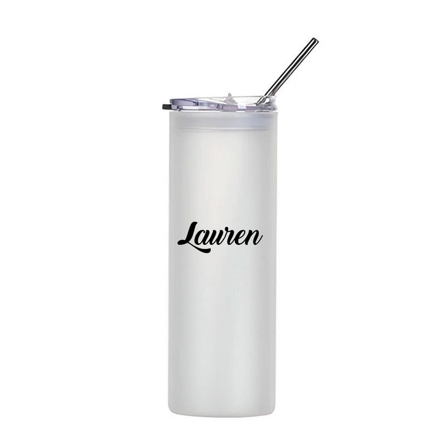 Personalised Water Bottles - Glass - Skinny - Frosted 750ml Tumbler with Plastic Lid