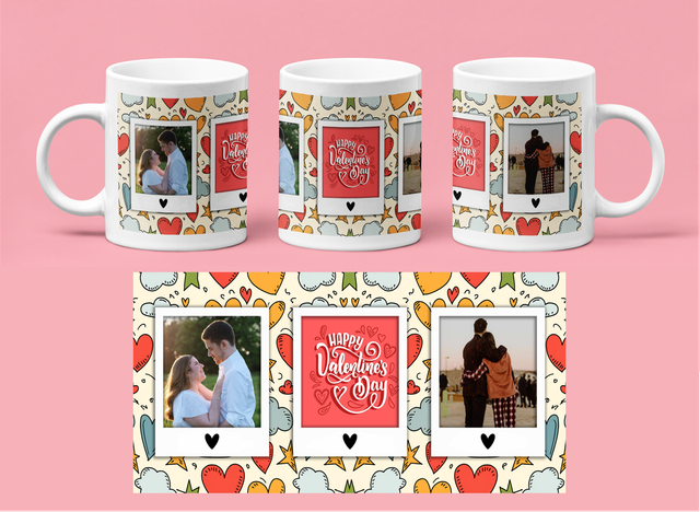Valentines Day Mug - Personalised - Coloured hearts - 3 photos